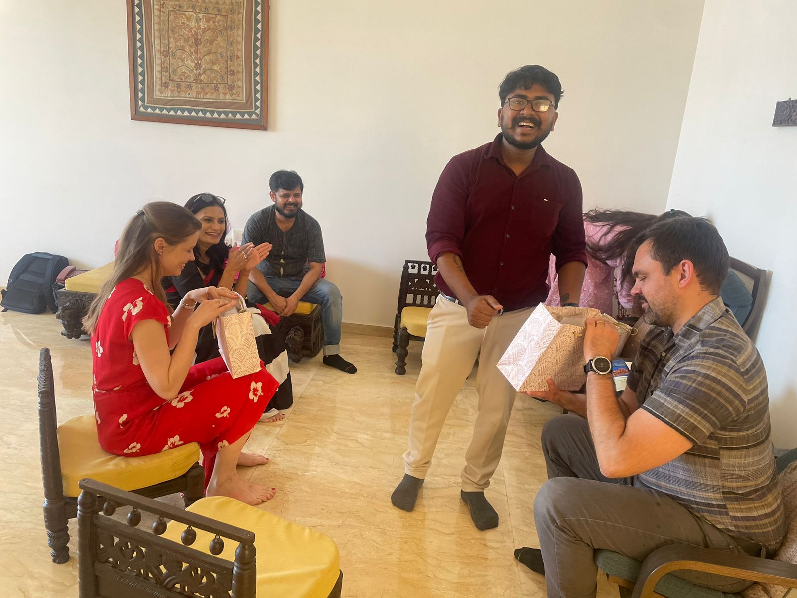 We exchanged gifts and snacks with each other. The gifts that Abhijit and I received are in the pictures below. We had lunch together and shortly after parted ways with a long goodbye and happy memories.